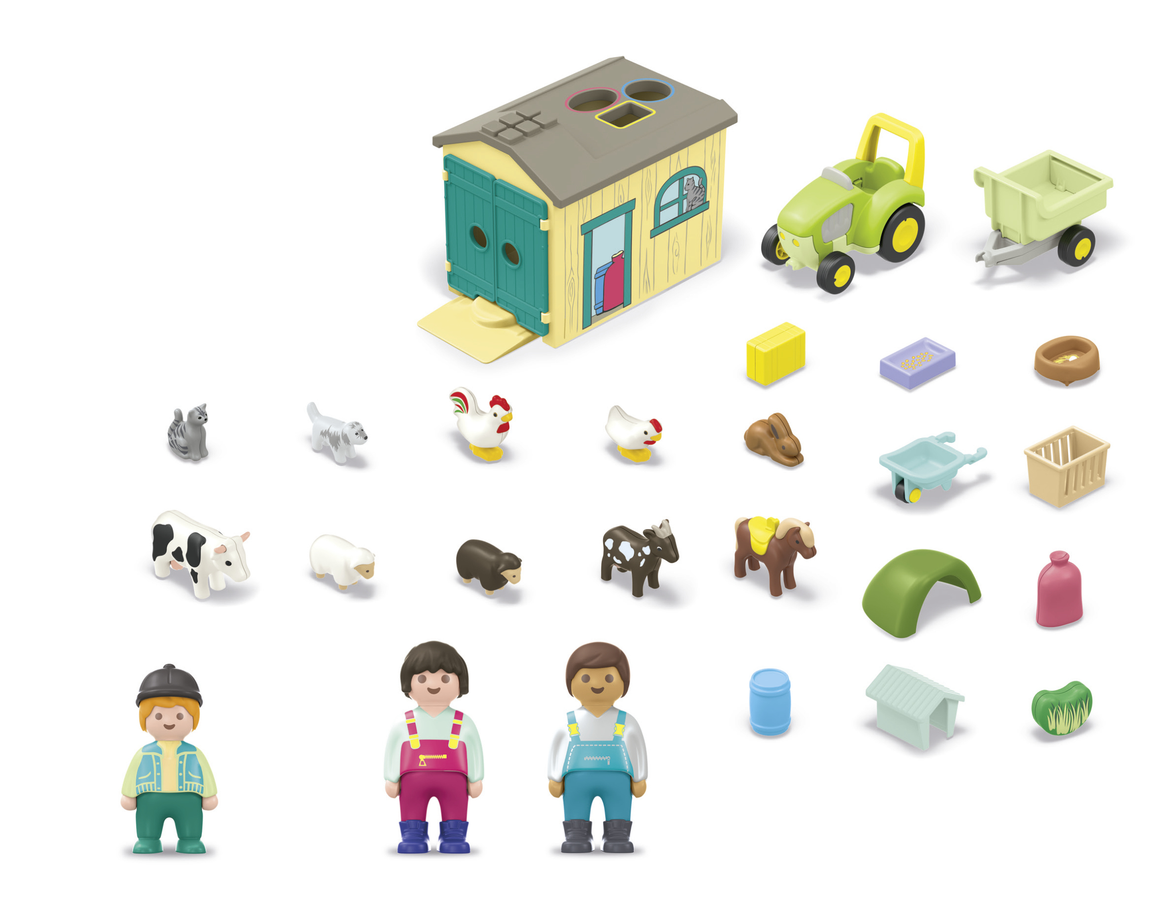 Ciekawe życie na wsi: Dzięki traktorowi, przyczepie i zwierzętom, twoje dziecko może pomagać na gospodarstwie rolnym, opiekując się zwierzętami i sortując karmę. Kto prowadzi traktor? A kto jeździ na kucyku?Zestaw figurek dla dzieci od 1 roku życia: kształty produktów PLAYMOBIL JUNIOR są odpowiednio przystosowane do zabawy dla dziecięcych dłoniBezpieczna zabawa: PLAYMOBIL JUNIOR jest produkowany w UE i nie zawiera plastyfikatorów ani małych części, które mogą zostać połknięte – dla jeszcze większego bezpieczeństwa